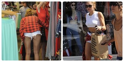 Recentemente ela foi fotografada andando com um short curtíssimo. Miley estava em uma loja de roupas, quando se abaixou para olhar umas roupas e mostrou o bumbum. O short era tão pequeno que mostrou parte do bumbum da cantora.