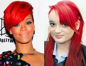 A cantora Rihanna, ao iniciar sua carreira, usava cabelos vermelhos. Essa era uma característica marcante na cantora. Com o passar dos anos e com o sucesso, a cantora passou a mudar de estilo. Já teve cabelo curtos e negros, negros e compridos, compridos e castanhos, vermelhos e cumpridos, enfim, uma grande variedade. O fato é que uma fã de Rihanna, Terry Bancroft, de 15 anos, para homenagear a cantora, tingiu os cabelos de vermelho e, por isso, foi expulsa de sua escola, no País de Gales . As saber do acontecido, Rihanna expressou sua indignação em seu twitter, ao postar o seguinte comentário: “Você é minha heroína, Terry (sic) Bancroft! A cor do seu cabelo não muda quem você é. Você é uma estudante de primeira linha”. A fã da cantora ficou muito feliz em saber do apoio de Rihanna e, só depois de tingir os cabelos de cor escura, é que foi aceita em sua escola novamente.