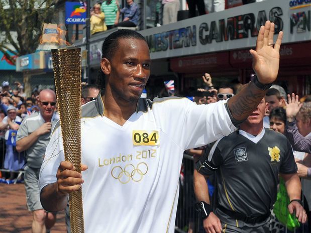 O grande nome da Liga dos Campeões pelo Chelsea, Didier Drogba já anunciou que sairá do time, mas com certeza não deixará de ser líder em Londres. Nesta quarta-feira (23), o jogador participou do revezamento da tocha olímpica e carregou a chama por Swindon, na capital inglesa.