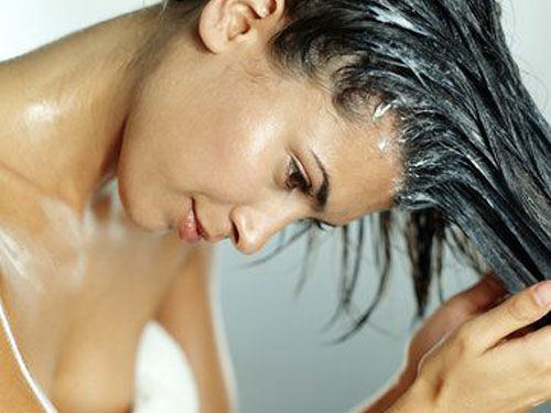 Retire bem o excesso de água e divida o cabelo em mechas, depois aplique o condicionador do comprimento às pontas fos fios e massageie bem, nunca aplicando no couro cabeludo.
