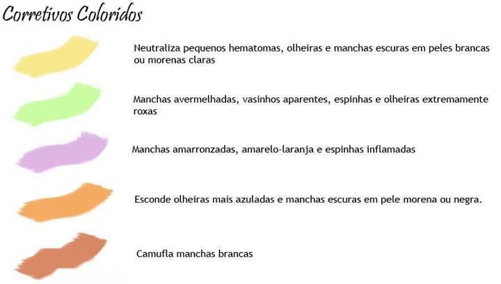 Por este motivo, existem corretivos de várias correr, cada um com sua utilidade. Veja agora para quê serve cada corretivo e como usá-lo: