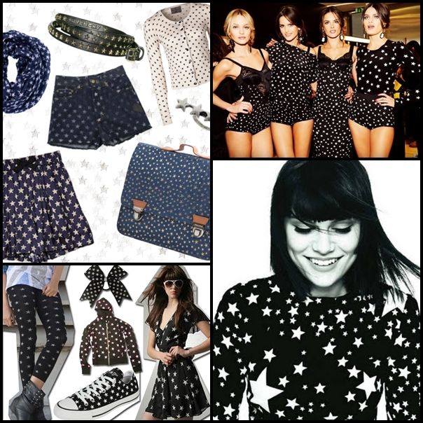 Uma nova moda recentemente lançada nas passarelas é a Star Print. A estampa, como já diz o nome, é repleta de estrelas. Cai bem em tudo, bolsa, short, blusa e acessórios. Lembrando que, como é uma estampa, deve ser bem medida na hora de combinar com outras cores e outros modelos de estampas. Nos vestidos, a Star Print surgiu nos desfiles em modelos mais esvoaçantes, dando um ar de leveza às peças. O bom desse modelo é que ele é bem dinâmico, podendo ser usado em qualquer situação e em qualquer tipo de corpo, pois mesmo sendo uma estampa, pode ser usando em qualquer corpo.