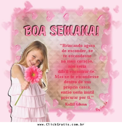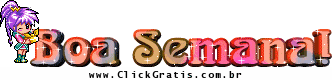 Procurando por uma recado animado de Boa Semana? Na seção de recados animados do Click Grátis você encontra diversas imagens animadas de Boa Semana para enviar aos seus amigos do Facebook e Orkut.