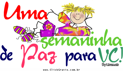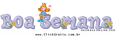 Procurando por uma recado animado de Boa Semana? Na seção de recados animados do Click Grátis você encontra diversas imagens animadas de Boa Semana para enviar aos seus amigos do Facebook e Orkut.