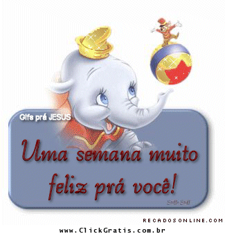 Procurando por uma recado animado de Boa Semana? Na seção de recados animados do Click Grátis você encontra diversas imagens animadas de Boa Semana para enviar aos seus amigos do Facebook e Orkut.