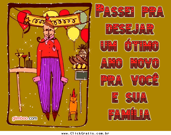 Procurando por uma recado animado de Feliz Ano Novo? Na seção de recados animados do Click Grátis você encontra diversas imagens animadas de Feliz Ano Novo para enviar aos seus amigos do Facebook e Orkut.