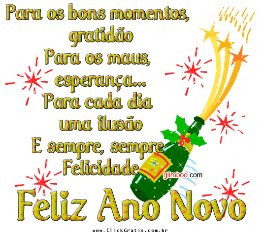 Procurando por uma recado animado de Feliz Ano Novo? Na seção de recados animados do Click Grátis você encontra diversas imagens animadas de Feliz Ano Novo para enviar aos seus amigos do Facebook e Orkut.