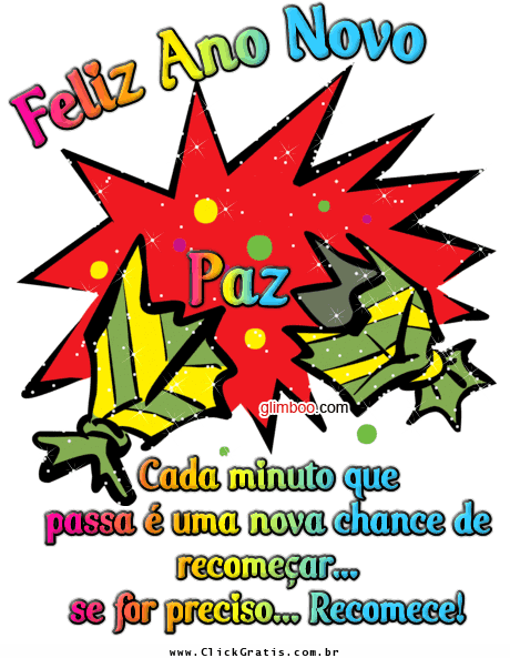 Procurando por uma recado animado de Feliz Ano Novo? Na seção de recados animados do Click Grátis você encontra diversas imagens animadas de Feliz Ano Novo para enviar aos seus amigos do Facebook e Orkut.