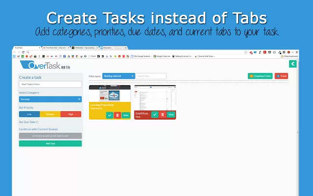 A criação das abas foi uma excelente novidade incorporada pelos novos navegadores, facilitando a vida dos usuários que trabalham com diversas páginas abertas ao mesmo tempo. Mas para quem exagera um pouco nestas abas, uma extensão muito interessante lançada para o Google Chrome é a Over Task.