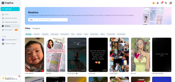 Ou, opte por alguns dos modelos pré-estabelecidos e prontos para serem editados. Ao escolher um modelo, será apresentada uma lista dos itens exigidos para a sua criação, tornando a edição rápida, prática e ágil.