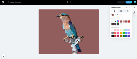Com a foto finalizada, na opção “Plano de Fundo”, crie um novo fundo com uma cor sólida, ou outro vídeo.